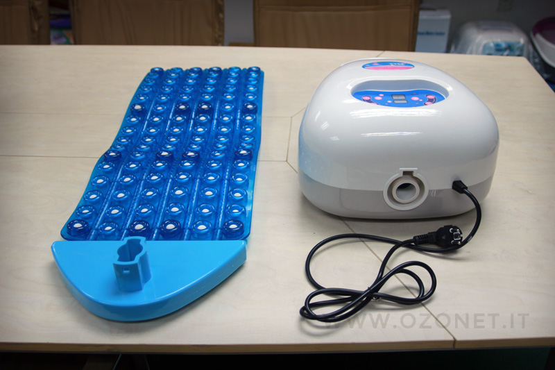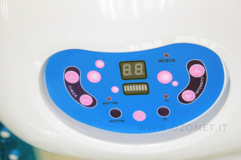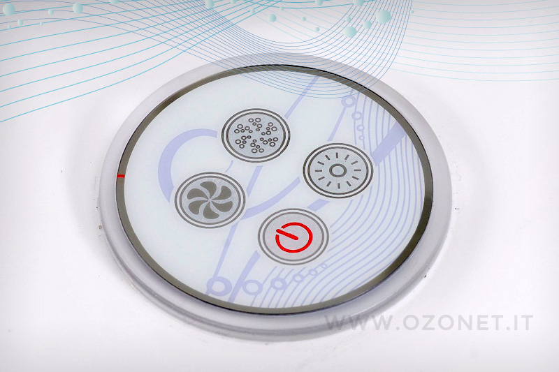 Menu opzioni per regolare intensità dei flussi e quantità di ozono miscelata all'acqua.